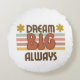 O design apresenta a frase elevatória "Dream Big Always" estilizada em uma fonte inspirada retroativamente. As letras são ousadas e lúdicas, cercadas por tons quentes e listras pastéis que evocam um senso de nostalgia e calor. Acentuada por uma floração amarela alegre, esta design inspira positividade e a mensagem eterno de perseguir os sonhos com um otimismo incansável.