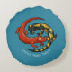 Um travesseiro redondo ou almofada, com duas salamandras sorridentes. Uma é uma salamandra vermelha (surpresa!) e a outra é uma salamandra de incêndio. Não literalmente entrelaçado, mas formando uma forma agradável. Fatos da salamandra: as salamandras vermelhas são da América do Norte, as salamandras de incêndio da Europa continental e das regiões circundantes. Ideal para presentes transatlânticos e temas de amizade; mude o texto padrão para o nome, mensagem ou legenda preferidos.