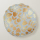 Almofada Redonda Douradas flores, fundo azul, imitação de folhas.