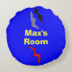 Personagem de desenho animado divertido, nave espacial Dragão na frente. A parte traseira tem texto, (NOME'S) Sala, PERSONALIZAR com seu nome. O espaçonave tem olhos castanhos, boca vermelha da chama, cauda e asas perfuradas, com um fundo preto com o aspecto de luzes em 3D e feixes amarelos de luz por baixo, o dorso do navio tem tubos de escape prateados que levam a subida do céu com estrelas azuis. Arte Original © 2014 TamiraZDesines.