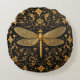 Almofada Redonda Dragonfly de Ouro refinada com Arte Floral