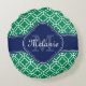 Almofada Redonda Emerald Green Wht Monograma do Marinho de padrões