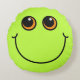 Este travesseiro tem uma cara verde de sorriso feliz do emoji com olhos alaranjados.