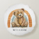 Um ursinho agudo e arco-íris bonitinho em cores sujas de ouro laranja, castanho e azul para um travesseiro decorativo giro em berçário. Basta adicionar o nome do seu bebê.