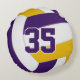 Esta equipe desportiva colorido o travesseiro decorativo de voleibol apresenta a imagem de um vôlei roxo, de ouro e branco, com aspecto realista, sobre o qual se pode personalizar o nome do jogador, o monograma ou a letra de varidade, o nome da equipe e da mascote na frente e o número de jersey no verso - por katz_d_zynes
