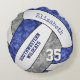 Esta divertida equipe de voleibol colore travesseiro para meninas com nome personalizado de equipe e mascote escolar apresenta a imagem realística estilizada de um voleibol azul, cinza e branco que tem um padrão caleidoscópico floral artístico misturado com seus painéis azuis e cinzas - seu nome e nome de equipe são personalizáveis, como seu número de camisa - por katz_d_zynes