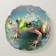 Almofada Redonda "Essência Esmeralda: Sapo Verde na Arte Fractal"