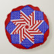EUA Flag-Teabag Folding-ROUND TRAVESSEIRO DECORATIVO- Diversos padrões vermelhos, brancos e azuis criados com uma bandeira básica dos EUA. Arrastados, dobrados e individualmente transformados em estilos de padrão combinados, cada padrão é único, mas também coordena. Os produtos de bandeira dos EUA vêm em um design de estilo caleidoscópio arredondado, assim como em padrões de fundo. Misture-os para uma festa de verão completa ou tema do Dia da Independência. As cores são patrióticas. O design está em ambos os lados do travesseiro. O fundo do travesseiro é uma cor vermelha sólida coordenadora.