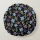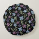 This round pillow features a deep, dark background that sets a dramatic stage for a vivid display of desert flowers. Scattered across the surface are blooms in warm, sun-soaked tones—think blues, greens and dusty purples—each delicately rendered with botanical detail.