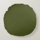 Um Travesseiro redondo de cor escura e sólida "Verde do Exército". Army Green é um amarelo-verde-profundo. Clique em "Personalizar" para mudar de cor ou para adicionar um padrão ou design. Código hexadecimal do produto: #4b5320