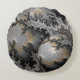 Um objeto esférico com uma superfície refletora se senta de forma destacada entre padrões complexos e fractais com vários tons de cinza, preto e ouro. Os intrincados padrões aparecem quase como uma paisagem texturizada, enquanto a esfera age como uma lente distorcendo e comprimindo os detalhes ao redor.