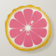 Um travesseiro projetado para parecer metade de uma toranja.