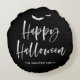 Traga as vibrações do Dia das Bruxas para dentro com este travesseiro decorativo mostrando "Feliz Halloween" em um roteiro branco com letra manuscrita sobre tecido preto. O travesseiro é perfeito para adicionar um estilo sazonal aconchegante a qualquer sala. Use-o para decoração domiciliar, festas de Halloween ou reuniões de outono. As opções de personalização permitem que você inclua um nome ou uma mensagem curta para um toque pessoal. Ele se encaixa bem com outros itens de decoração caseira com o tema do outono.