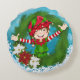 Feliz Elf Festivo Blue Holiday Round Travesseiro.