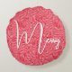 Feliz em um roteiro branco em um padrão de rabiscos e pontos brancos, este travesseiro vermelho redondo é perfeito para decorar sua casa para as férias. CORRESPONDENDO a itens na nossa loja.