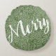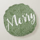 Feliz em um roteiro branco em um padrão de rabiscos e pontos brancos, este travesseiro verde redondo é perfeito para decorar sua casa nos feriados. CORRESPONDENDO a itens na nossa loja.