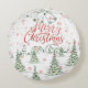 Almofada Redonda Feliz Natal, Red e Green Snowy Trees
