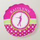 Travesseiro decorativo redondo personalizado do patinagem artística que caracteriza um design do rosa, do verde, e o branco das bolinhas. Use o campo feito sob encomenda do texto para adicionar um nome antes que você peça. Ou se você prefere, deixe o vazio do campo do texto para nenhum nome. Você pode igualmente usar "personaliza-o" botão para mudar a pia batismal!