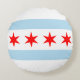 Travesseiro redondo com bandeira da cidade de Chicago (maior cidade de Illinois), bandeira branca e azul clara listrada com quatro estrelas vermelhas