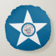 Round Pillow with flag of Houston, Texas; blue flag with seal of Houston in a white star, with an illustration of a train