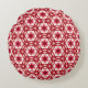 Floral round pillow in hues of red, light tan, and white. The reverse side is the same pattern but smaller...you decide which side you'd like to show :) ****Please note that due to differences in computer monitor and device settings, the colors on the actual physical product may not be an exact match to what you see on your screen.**** Thank you for looking! Peace, love, and light <3****