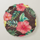Almofada Redonda Flores Tropicais Coloridas Fundo Escuro