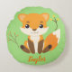 Decorre o berçário do seu bebê com este animal de floresta temido travesseiro redondo. Sobre um fundo verde, uma raposa laranja adorável te cumprimenta. Personalize o nome do bebê no fundo. Clipe Fox e Fall: LaBoutiqueDeiColori: www.laboutiquedeicolori.com