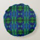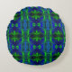 Almofada Redonda Formas, 'Traços verdes flutuam' sobre fundo azul