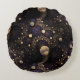 Esta almofada redonda única apresenta um belo padrão fractal de galáxia.