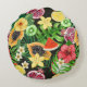 Almofada Redonda Frutas tropicais, flores e folhas a preto