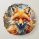 Ein hübscher kleiner Fuchs schaut dich an. Er sitzt zwischen Blumen und spielte mit Schmetterlingen.