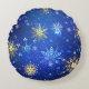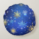Almofada Redonda Fundo Azul XMAS com Flocos de Neve Ouro