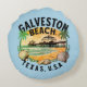 Travesseiro redondo decorativo com uma vinheta retrô estilo da praia Galveston, frente d'água TX. Disponível em várias roupas e acessórios.
