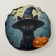 Almofada Redonda Gato Negro Adorável Vestindo Chapéu de Bruxa