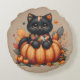 Almofada Redonda Gato Preto na Abóbora com Padrão de Inclinação de