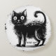 Eleve seu espaço com este travesseiro artístico redondo com uma ilustração ousada e esbranquiçada de gato preto. O gato é desenhado com linhas rugosas, raspadas e cercado por placas pretas de tinta, criando uma estética dinâmica e suja. A textura angustiada e o estilo de rabisco dão ao azulejo um apelo puro e moderno.