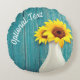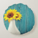 Girassóis plantados sobre uma prancha de madeira rusticada, pintada em azul-de-vidro marinho. Personalize para seu gosto!