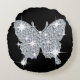 Relaxe no estilo com este brilho prateado redondo no travesseiro redondo preto com a minha falsa design de borboleta de diamante. Borboleta é uma imagem feita de muitos pequenos diamantes. Para encontrar produtos compatíveis com este design, visite nossa loja zazzle.
