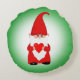 Almofada redonda com gnomo de Natal em fundo verde. Ideal para as festas de Natal.