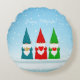 Almofada Redonda Gnomos de Natal em Travesseiro Azul Claro