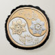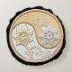 A yin yang symbol is adorned with intricate floral patterns and leaves. The design features a harmonious blend of gold and silver colors.