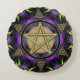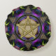 Psychedelic colorful fractal art in vibrant pinks, blues and purple with golden pentacle in the centre.