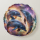 Almofada Redonda Golfinhos Cósmicos e Água-Viva no Espaço