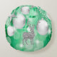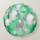 Adicione alguma elegância à sua decoração de Natal com o nosso lindo Travesseiro decorativo redondo com os Green Bokeh Ornament Balls Silver Reindeer Design