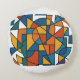 Esta imagem apresenta uma composição de abstrato vibrante criada de uma matriz de formas geométricas — triângulos, retângulos, quadrados, círculos e trapezoides que se cruzam e se sobrepõem dentro de uma estrutura quadrada. O trabalho de arte usa uma paleta de cores em negrito incluindo laranja, amarelo, azul, verde e roxo. Os contornos pretos definem cada forma, criando um efeito de vidro colorido e adicionando estrutura no meio do caos. O arranjo evoca movimento e equilíbrio, com as diferentes formas e cores interagindo harmoniosamente. O efeito geral é dinâmico e vivo, reminiscente da arte abstrato moderna ou cubista, convidando os espectadores a explorar as relações entre formas e espaços.