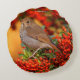 Almofada Redonda Hermit Thrush Songbird no Scarlet Firethorn
