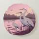 The artwork uses a soft pastel color palette: a rosy background, muted tones for the birds, a deep shoreline shade, and warm yellow highlights for catai, grasses and a distant sun .