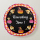 Travesseiro redondo personalizável, com um modelo de texto, xadrez laranja e cor-de-rosa. Este travesseiro de outono apresenta, desenhados à mão e design digitalmente, texturas em folha, folhas de outono e abóboras cor-de-rosa e laranja. presente de chá de fraldas excelente e decoração de um quarto de quarto. Travesseiro perfeito do outono para meninas que adoram adicionar um toque balbucioso ao seu quarto. Se o desejo mudar "Tempo de Colheita!" com o seu texto preferido.