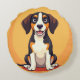 Uma ilustração digital encantadora de um cão alegre, colocada contra um fundo redondo vibrante, perfeita para projetos de design, cartões de saudação ou trabalhos de arte com tema animal.