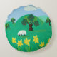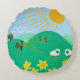 Almofada Redonda ilustração cênica divertida de ovelhas bonitinhas